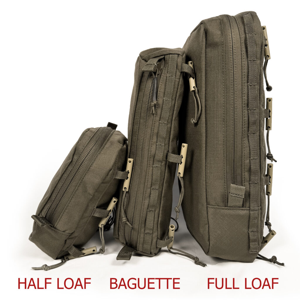 Our full loaf is the largest of all sustainment pouches in our line. For the lighter bulkier items which need fast access, this is the perfect pouch. We added one subdivided mesh pocket internally for increased organization. L shaped zip for easy access and of course LTAS™ for improved speed of adding and removing from our packs. We sized this pouch to fit perfectly with the CF1, CF2, CF3 & CF4.