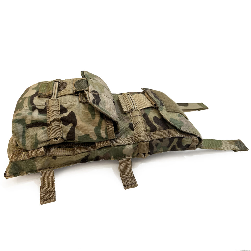 When the “Juice Box” is worn with the DZ Rig, we designed the size and shape to fit under any of our framed packs slotting perfectly in the harness dead space creating a versatile solution for long range patrols.