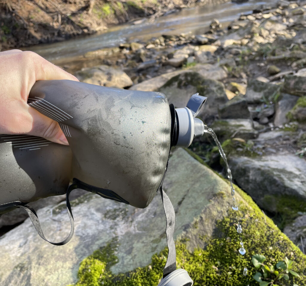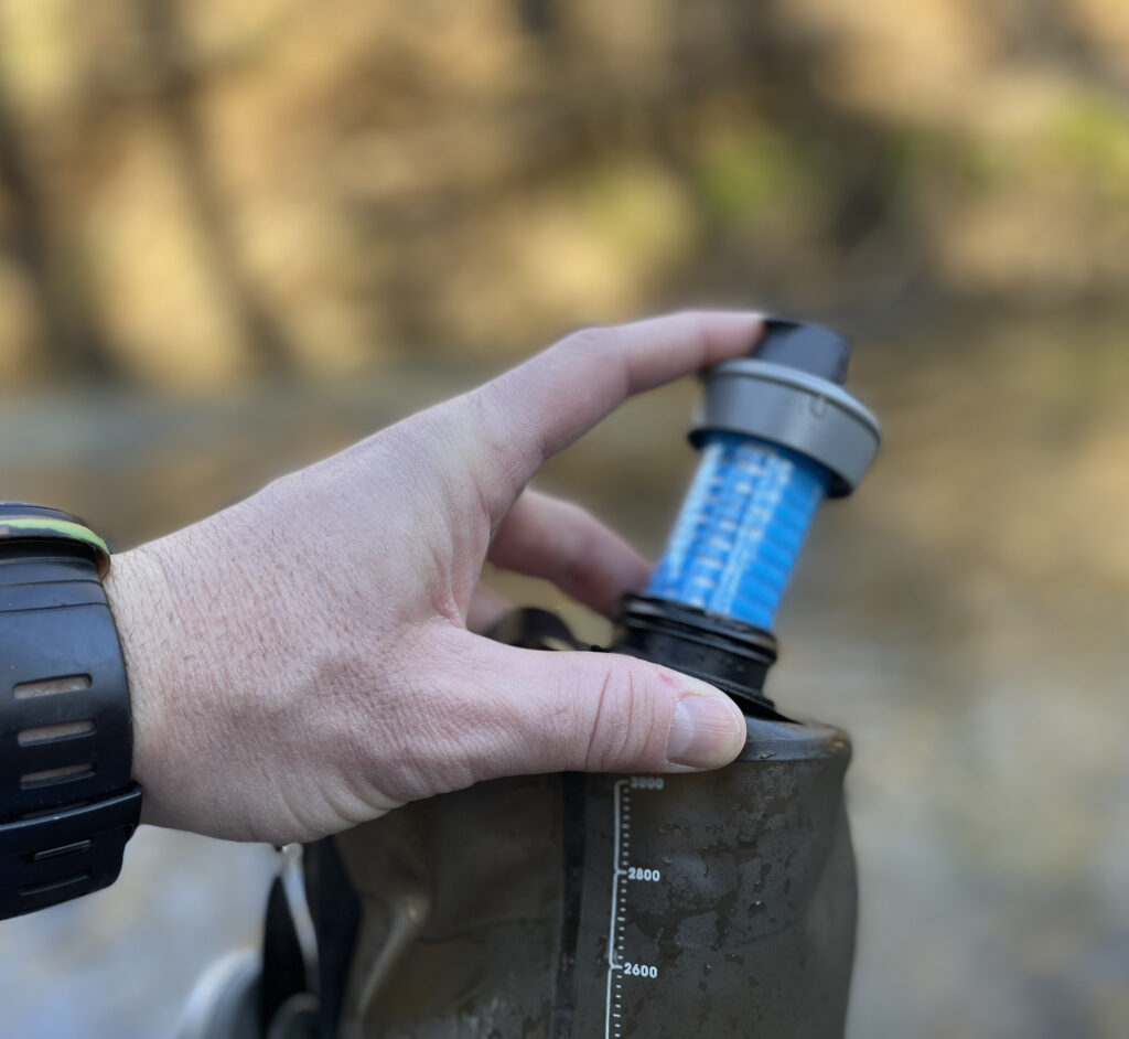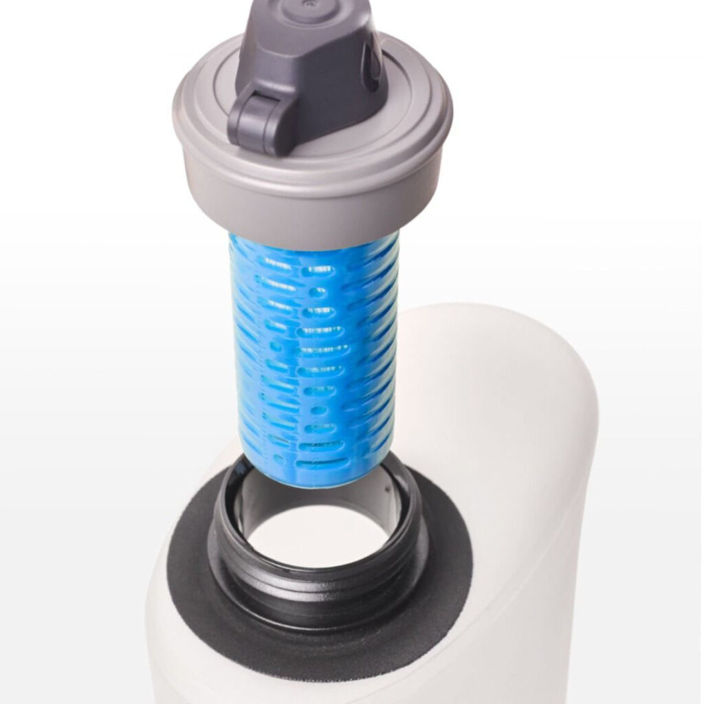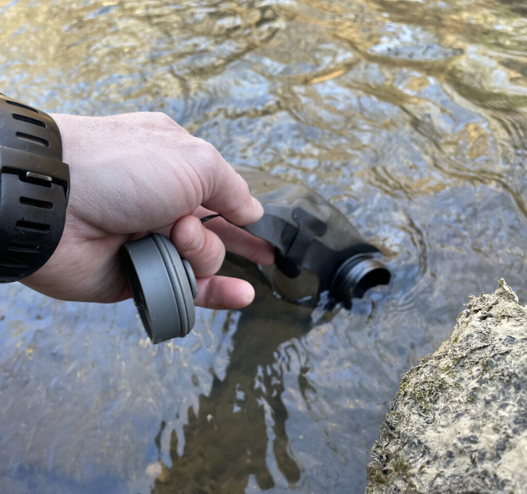 Filter water on the go. Ultra-fast and quiet way to replenish your water supply in the field when time and stealth is important, no more squeaking “tactical filters” heard throughout the forest. The 42MM Filter Cap threads seamlessly onto all sizes of HydraPak’s 42MM threaded Seeker water storage bags and Flux flexible bottles morphing them into filtration solutions. The end result being lightweight filtration kits that can either be used to squeeze filtered potable water into other camp bottles and containers or to drink freshly filtered water from a Seeker or Flux. Both deliver fast and easy water treatment around camp or on the go.