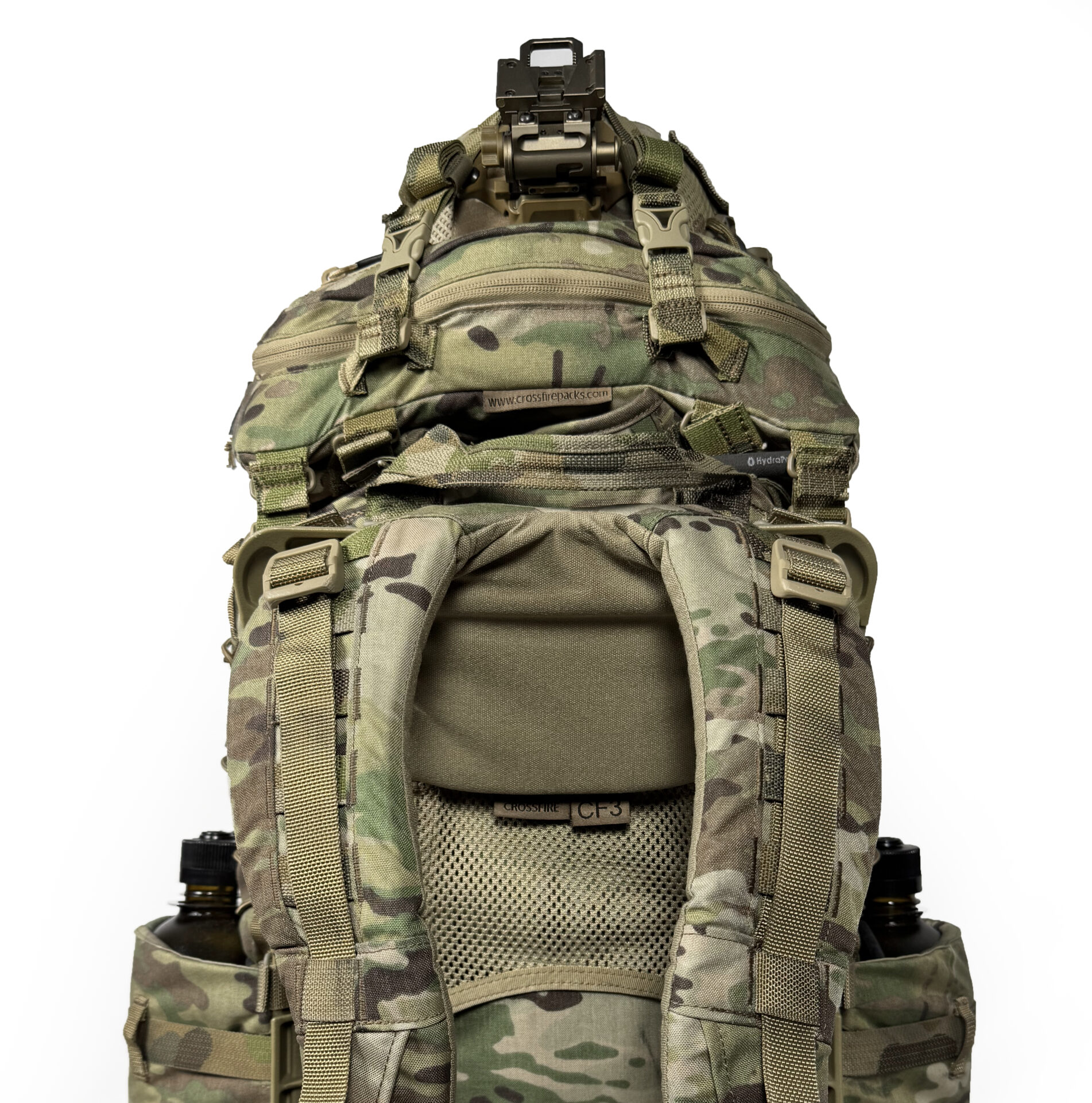 Available space has always been at a premium when integrating a smaller pack into a main sustainment style ruck. When stowing a standard smaller pack inside or trying to turtle shell it onto the outside in some DIY fashion, either way the end user ends up sacrificing capacity or having an off-balance system causing the user to be in forward leaning position which is biomechanically inefficient and can cause injuries.